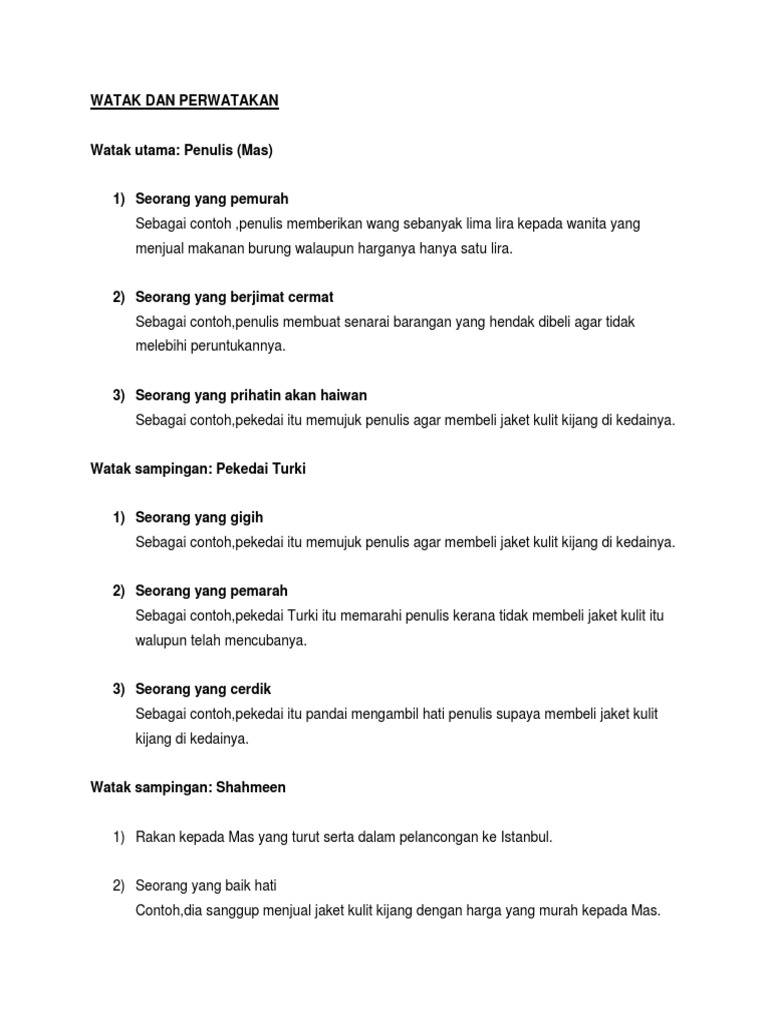 Soalan Cerpen Jaket Kijang Dari Istanbul